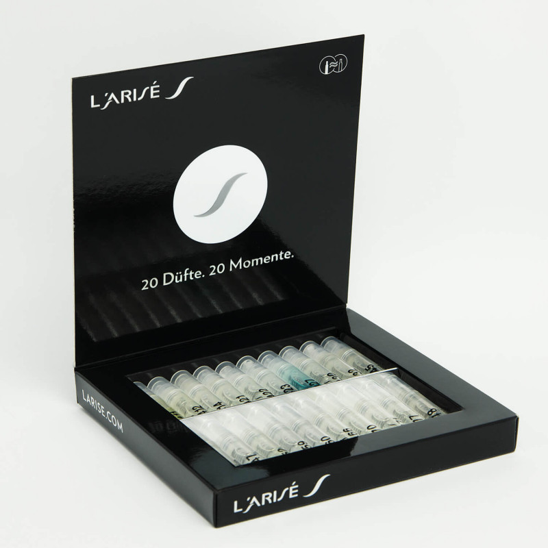 Das Duftprobenset enthält folgende Düfte: 414, 421, 422, 427, 430, 432, 446, 447, 452, 460, 470, 477, 481, 482, 487, 488, 490, 493, 494, 495.